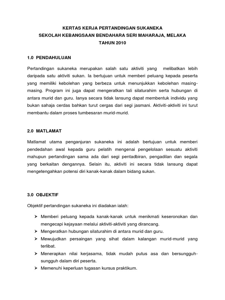 Kertas Kerja Pertandingan Sukaneka Pdf